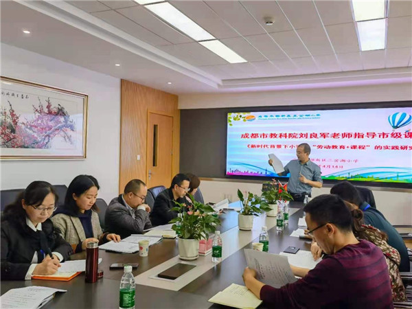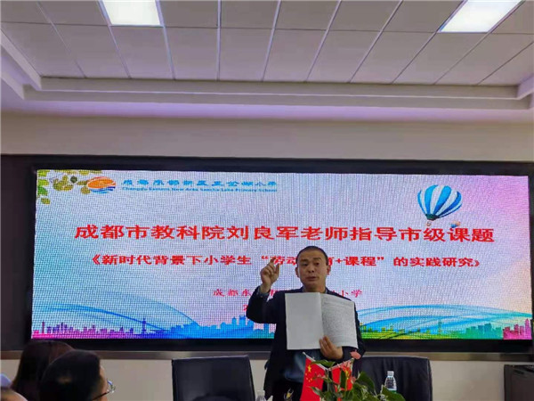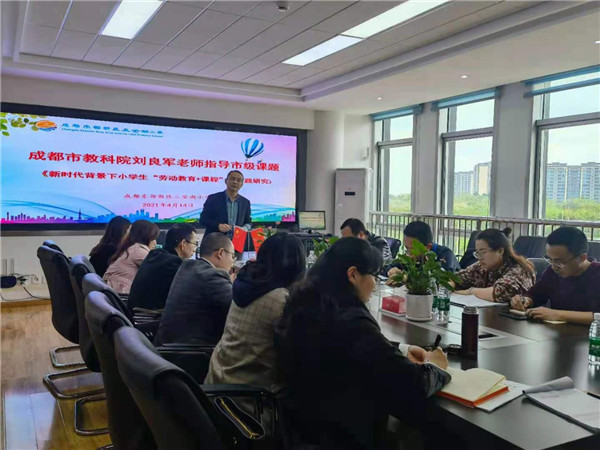 随着教育改革的不断深入,“科研兴校”“科研兴教”已逐渐深入人心。为进一步增强学校教师研究的意识,促进教师进行深入研究,提高教师发现问题、解决问题的能力,4月14日,成都东部新区三岔湖小学邀请成都市教科院刘良军老师对学校拟申报的市级课题《新时代背景下小学生“劳动教育+课程”的实践研究》进行了指导。副校长汪辉勇、副校长郭勇、教科室全体成员、课题组主研代表以及贾家小学、草池小学的部分领导参加了此次指导会。