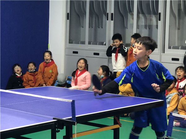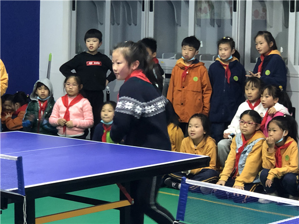 比赛开始,乒乓球飞速地在选手之间来回击打,小观众们屏气凝神,眼睛也跟着球快速地转动着。深吸一口气,打赢了;观众席的一侧传来兴奋的欢呼声,庆祝着冠军的诞生。另一侧的小观众们虽然有些失落,但却立刻围到了选手的面前,互相鼓励,加油打气。