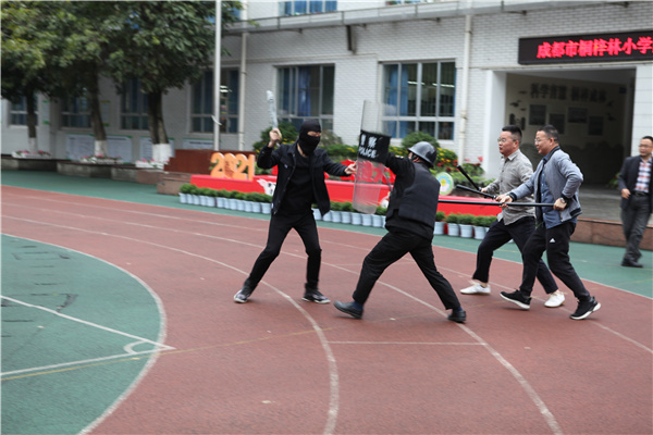 2021年4月19日,桐梓林小学举行了桐心向党之防暴应急演练,全校师生在庆祝中国共产党成立100周年之际,增强安全意识,提高防暴技能,建设平安校园。