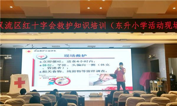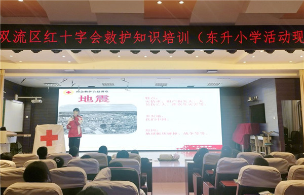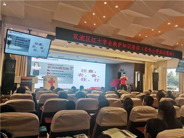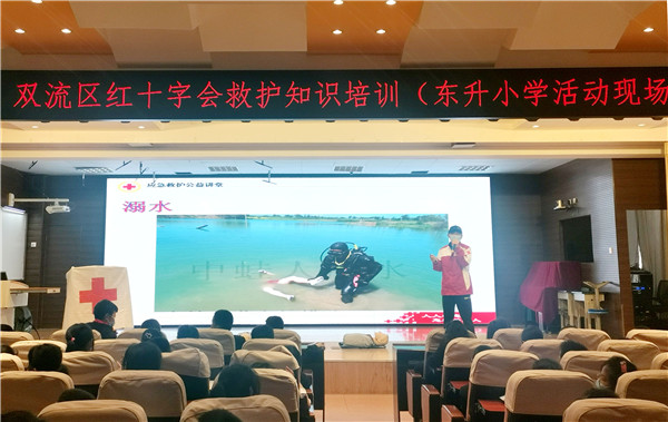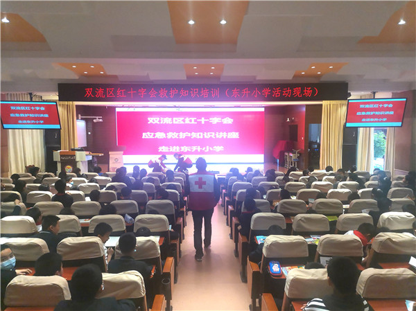 为了让学生了解救护知识,掌握急救技能,让学生在遇到突发情况时能采取正确有效的急救措施,2021年4月19日,双流区红十字会工作人员到东升小学开展了救护知识培训,东小五年级近300名同学参加了活动。