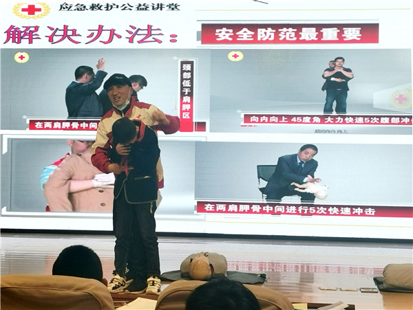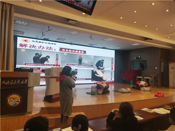 活动初始,东小卫生室对参与此次活动的师生提前介绍了红十字会的起源发展、组织机构、标志及人道、博爱、奉献的红十字精神,让同学们对红十字有了初步的了解。随后,红十字会工作人员结合理论知识和实际救护技巧对生活中遇到的交通、触电、溺水、火灾、地震、烧伤烫伤、狂犬病等突发状况详细介绍了应对急救措施。