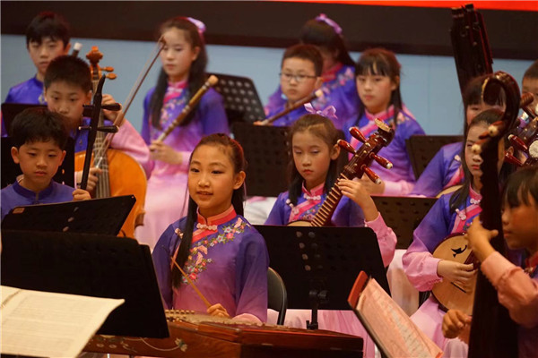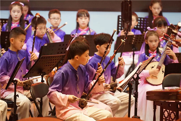 民乐团的同学们用一首描绘彝族山区儿童生活场景的民族管弦乐作品《嗡喽咪》给大家勾勒出了一幅动人的画面。