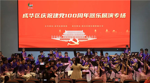 在这个春意盎然的四月,双馨民乐团、双馨舞蹈队分别参加了由成华区教育局主办的庆祝建党100周年第十届中小学生艺术展演的器乐和舞蹈专场活动。