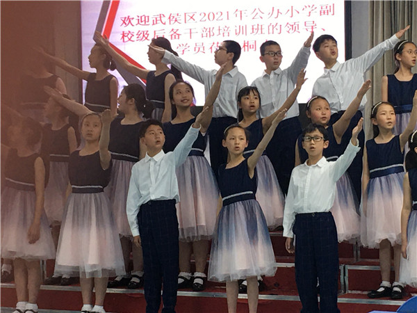 3月13日,武侯区公办小学副校级后备干部培训班的领导和学员走进桐梓林小学,开展了第六次研修活动。