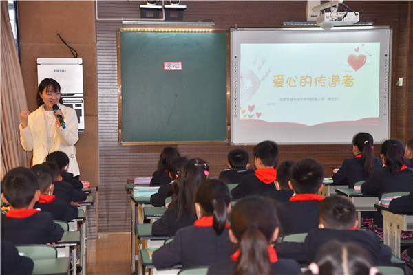 第三节课由来自成都棠湖外国语学校附属小学的魏行行老师执教《爱心的传递者》一课。这节课上,魏老师从孩子们熟悉的雷锋讲起,并用一个新朋友“小爱同学”的所见所闻一路展开,带孩子们在情境中感受爱心,在交流中汇报爱心,在行为中回味爱心,在生活中学习爱心,在实践中奉献爱心。整个课堂思路清晰,做到了四声:笑声、赞声、惊讶声、掌声。