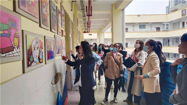吴莲副校长代表学校对跟岗的老师们表示热烈欢迎。信息化中心副主任李春花带领全体学员参观校园,介绍和雅主题文化大厅、师生书法作品展示厅(区)、学生科创作品展示墙、书径文化长廊、习字台、社会主义核心价值观(篆刻)宣传阵地、足球文化墙、党史学习教育主题文化长廊、和雅教育主题文化长廊、琴心长廊、墨韵长廊、书香长廊、党员活动室、班级文化阵地、特色古琴教室、特色书法教室、特色阅览室等校园功能区及文化阵地。