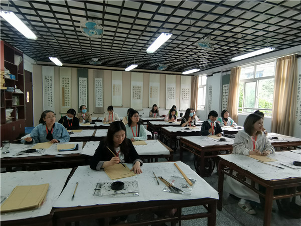 大课间,跟岗老师来到书法室,在书法教师唐浩波的指导下感受、学习书法。