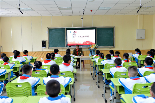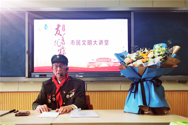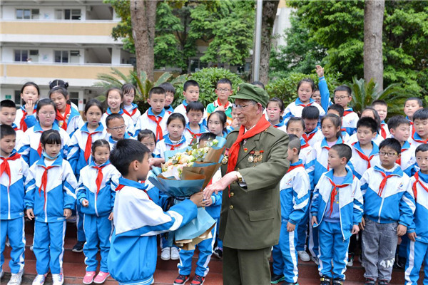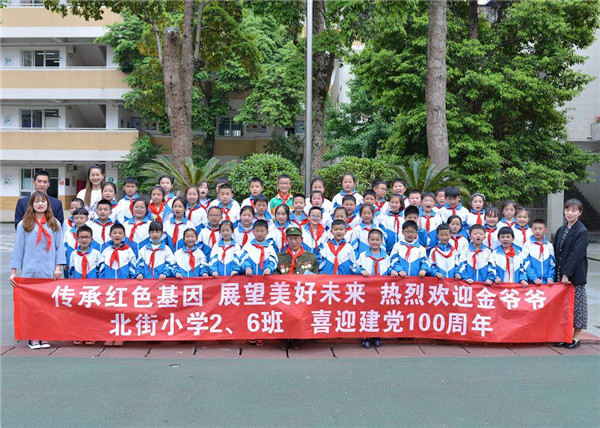 4月23日,大邑县北街小学二年级六班组织开展了“传承红色基因 展望美好未来”革命爱国主义传统教育活动。活动特邀四川省革命伤残军人、大邑县休养院抗美援朝老革命金荣祥为师生作宣讲。