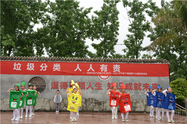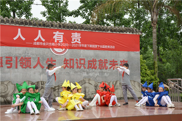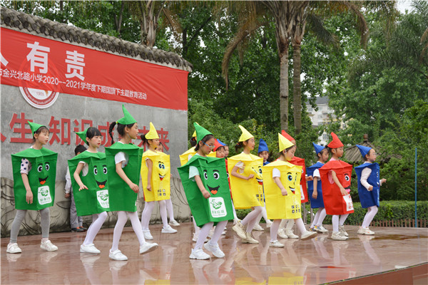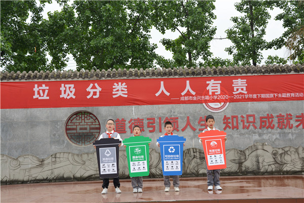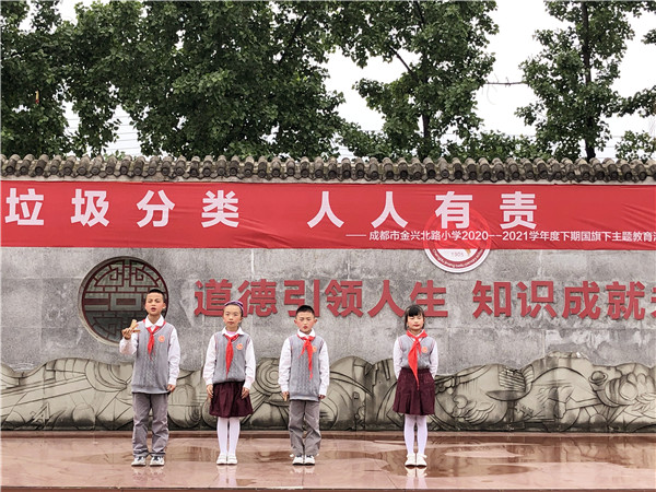 为深入推行“垃圾分类进校园”,促进学生对垃圾分类知识的了解,提高师生的环保意识,学会垃圾分类。2021年4月20日,成都市金兴北路小学3.1中队开展“垃圾分类,人人有责”国旗下主题教育活动。