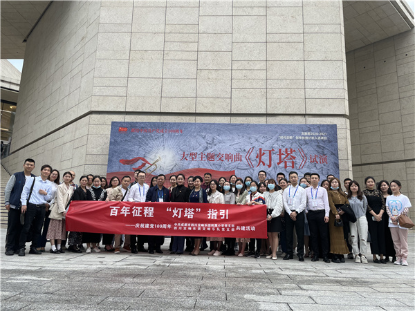 在建党百年之际,成华小学教育联盟各学校支部和四川交响乐团交响乐队党支部开展共建活动。4月23日晚,四川交响乐团附属小学全体党员教师、学校青年教师共四十余人及联盟学校代表共同欣赏了由四川交响乐团和四川音乐学院交响乐团联合演奏的大型主题交响曲《灯塔》。
