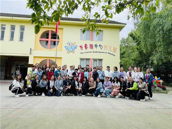 在刘栎岐老师和邓美君老师的带领介绍下,沿着园子自然小道,来客们参观了万幼环境和孩子们区域游戏活动的现场,感受到浸润式的自然环境与自然教育。来客们感叹,万幼是真正的生态、自由、环保,是儿童成长需要的“尚美”园。