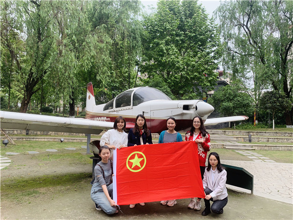 “五四”青年节前夕,为庆祝中国共产党成立100周年,成都市成飞小学团支部团员和青年教师走进成飞社区,感受“航天人的航天梦”。