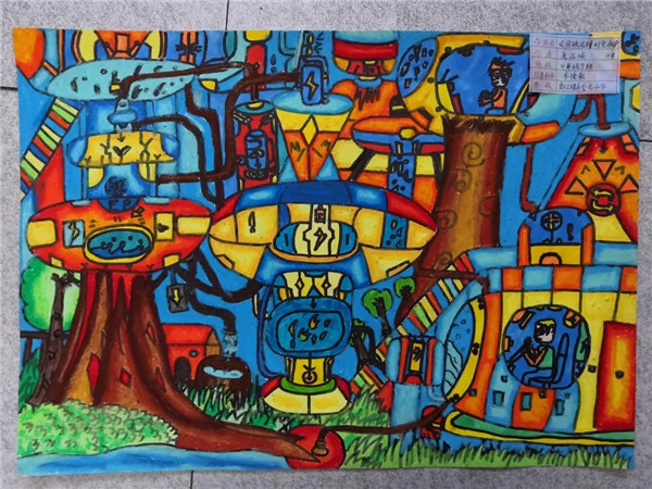 孩子们在“少儿科学幻想绘画创作”中积极参与、认真创作,内容妙趣横生,创作思维跳跃,想象力丰富、用色大胆,尽展童真童趣。