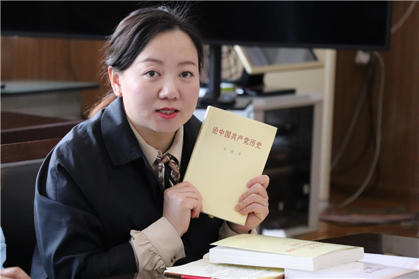该校党支部副书记庄压同志向全体党员教师荐书,庄副书记为大家带来了《论中国共产党历史》《习近平新时代中国特色社会主义思想学习问答》《中国共产党简史》《毛泽东 邓小平 江泽民 胡锦涛关于中国共产党历史论述摘编》四本书。庄副书记提出,“作为新时代的党员教师,我们要从党史学习中汲取思想的力量、信仰的力量、道德的力量、实践的力量,要有高度的责任心,深爱学生、深爱党,为国家的美好现在和未来贡献自己的教育力量!”