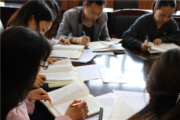 活动伊始,党支部书记杨运萍同志向全体党员教师传达了上级学党史系列教育活动的相关文件精神。同时,杨书记提出了党员教师自学要求,要求党员教师不但要原原本本学、结合实际学、组织推动学,还要带领学生学习革命英雄事迹、党史题材的各项内容。