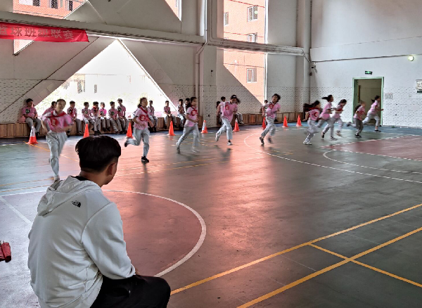 各位检测组教师齐聚石室小学会议室,抽签决定学校四、五年级的学生参加此次复核检查。在年级分管行政、班主任和副班主任的带领下,贤娃们精神抖擞地来到操场。学校进行了简短的动员仪式。“争做体质监测小贤娃,让我们的身体素质得到提升。”同学们激昂地声音回荡在整个操场。体育组老师带领大家进行了“微”运动热身活动,以备接下来的各项体育运动。