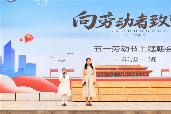 2021年4月26日上午,四川天府新区实验小学一年级一班的同学们带来了以“致敬劳动者”为主题的五一劳动节国旗下活动,本次升旗仪式由一年级一班陈相宜和她的妈妈共同主持。