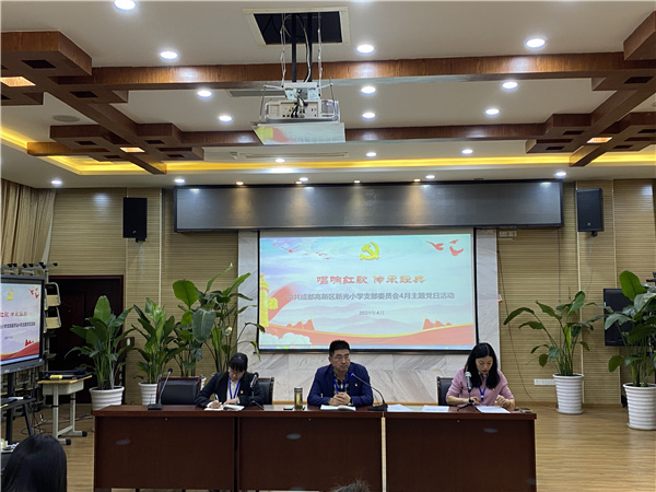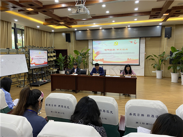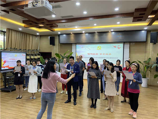 2021年4月26日下午,新光小学全体党员在阶梯教室开展了党支部4月主题党日活动——“唱响红歌 传承经典”。