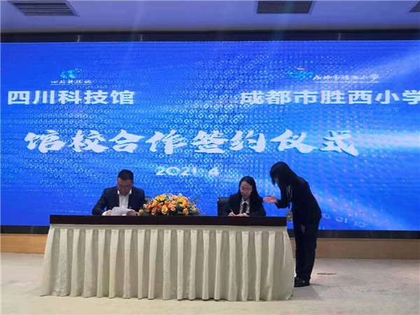 4月29日,成都市胜西小学科学组老师参加了四川科技馆“馆校合作”项目签约仪式。
