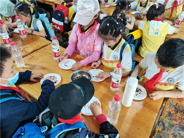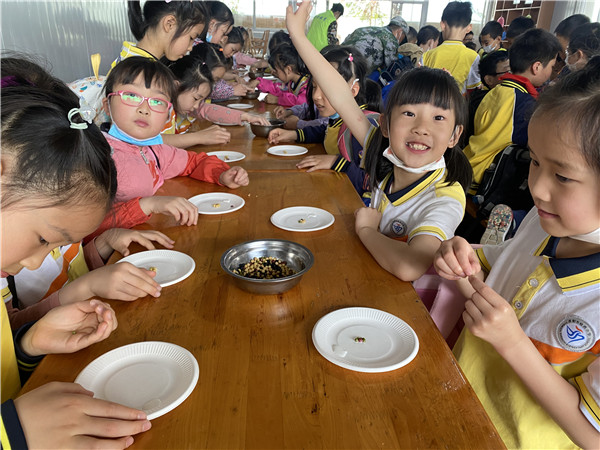 春光明媚,下午时分,一轮七彩的日晕出现在了头顶的天空,孩子们抬头仰望,欢呼雀跃,大自然的赠礼为此次研学活动画上了圆满的句号。孩子们在劳动中磨砺心志,在劳动中合作创造,“百年恰是,风华正茂”,二年级的少先队员们立志向、树理想,传承着党的百年精神,正在用实际行动创造着属于他们自己的美好时代。