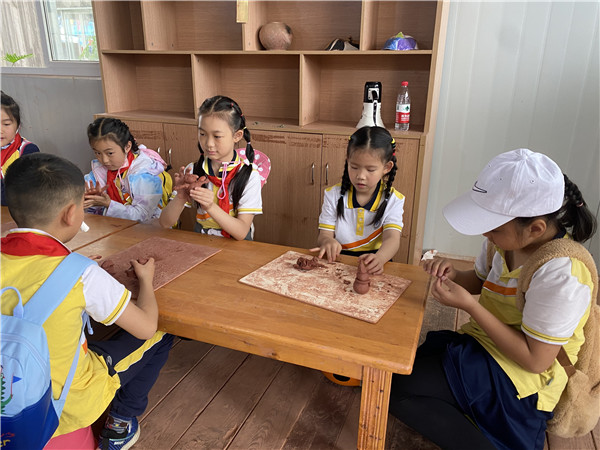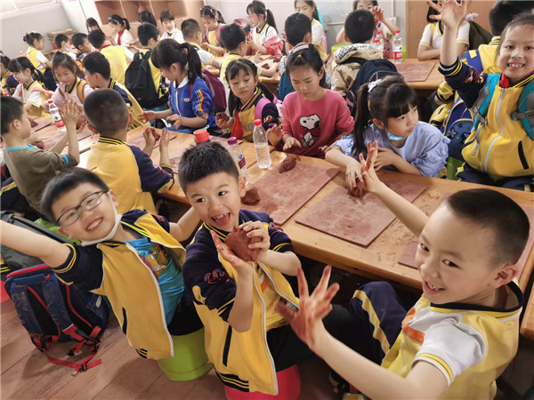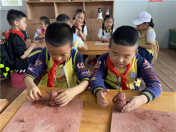 红泥代表土地,劳动人民用智慧以泥土为基创造了无数优秀文化。一团团红泥在手中,孩子们揉、搓、捏、按、压,塑造出一份份独一无二的作品,一架飞机,一所房子,一个陶罐,一只小动物……通过对传统工艺的亲身体验,孩子们感受到了古代劳动和智慧的力量,传承了传统文化和工艺。五谷来之不易,劳动需要被珍惜。孩子们通过辨认五谷,构图、选材、粘贴,一起思考,相互合作,进行创意拼搭,创造出了一幅幅活泼可爱又充满灵气的拼图。在一系列劳动中,孩子们真切感受到了劳动的价值和意义,学会了如何尊重和感恩劳动,循回了劳动的初心。