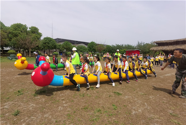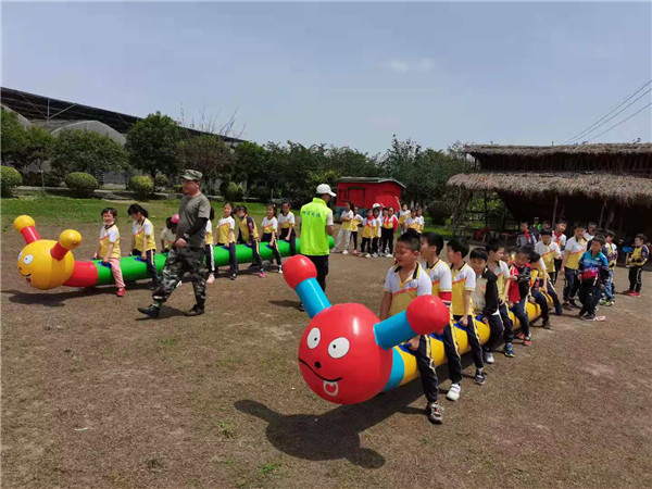 在专业教练的带领下,孩子们来到户外,呼吸着新鲜空气,进行了TF挑战,进行攀爬训练。过程中,同伴们相互鼓励,原本有些害怕的同学获得了勇气,克服了恐高心理,顺利登顶,锻炼了意志,磨砺了意志。在“进击的毛毛虫”项目中,孩子们10人为一组驾驶着毛毛虫在草地上砥砺前行,他们相互协调,一起配合,顺利往返。项目结束后,孩子们不禁感叹:一个人的力量很大,许多人团结起来的力量更大呢。