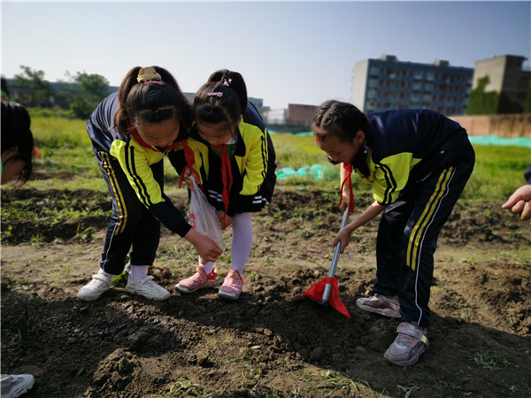劳动是美的底蕴和源泉所在,探寻劳动的美的过程,就是升华品质情操、提升精神境界的过程。在学生发展中心张茜老师的带领下,孩子们手握希望锄,抬头挺胸、目光坚毅,铮铮誓言立下雄心壮志: