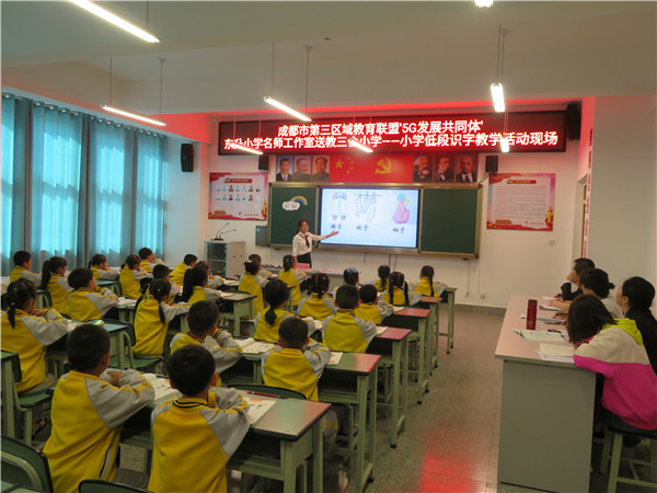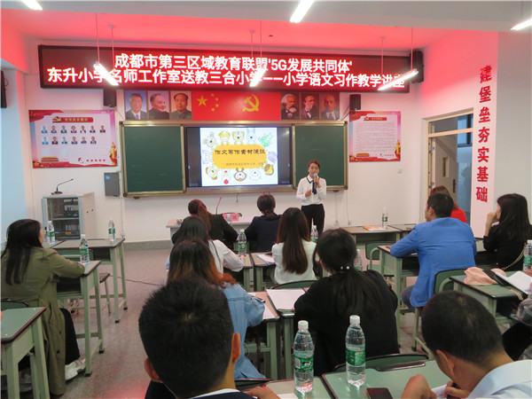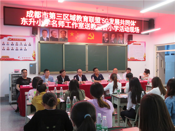 人间四月,百花盛开。为深入推进成都市第三区域教育联盟工作,2021年4月30日上午,“5G发展共同体”五校联动,发挥优质教育资源辐射带动作用,推进区域教育的均衡发展,双流区东升小学校长干兴志、副校长余佳杰带领昝小惠、刘霞、李佳蔚三位老师来到简阳市三合小学,开展成都市第三区域教育联盟“5G发展共同体”名师工作室送教活动。