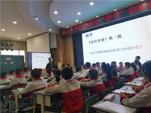 第二节课由郑平老师执教《有多重》,让学生通过不同的物品体验感受1克和1千克,整节课学生体验活动丰富。两处的群学活动更让学生充分体验。