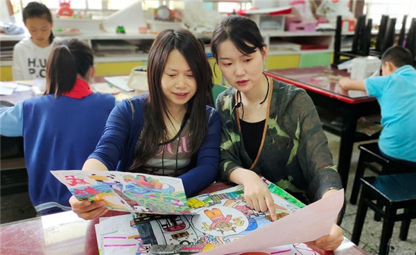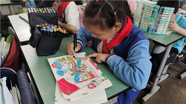 绘画比赛完成以后,经过班主任初选,两位美术老师从主题、构思、情感、线条、色彩等方面对绘画作品进行了评奖。