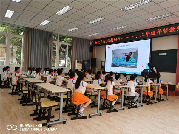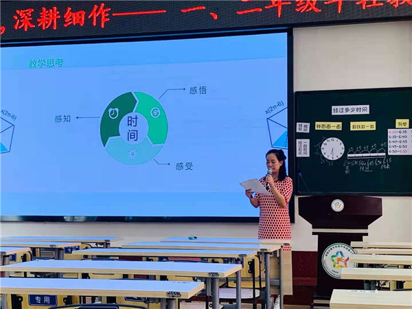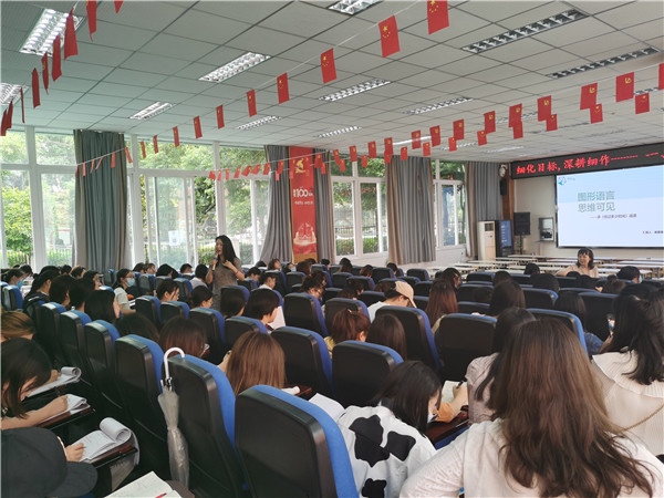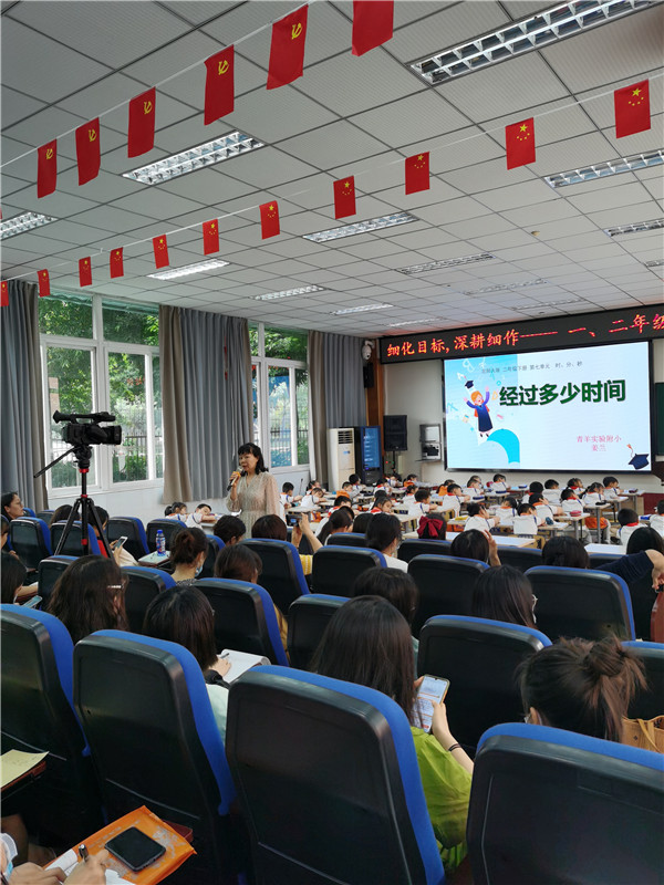 五月的槐花静谧在校园中,教育的芳香也沁润着老师们的成长。为了促进数学教学的课堂质量,提高年轻教师的教学水平,能让年轻教师在新课标的指导下深入地解读教材,提高学生的核心素养能力,近日,在青羊区数学教研员郭学琴老师的组织下,全区一、二年级的青年数学老师在成都市青羊实验中学附属小学参加了内容丰富、极具指导性的图形语言、思维可见的教学研讨活动。本次研讨活动的主题是“细化目标,深耕细作”一、二年级年轻教师培训。
