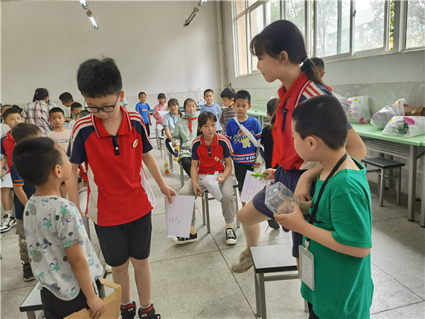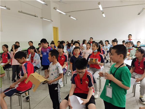 本次比赛邀请六年级的大哥哥大姐姐当小裁判,现场考验一、二年级的小弟弟小妹妹,是不是能把生活中常见的垃圾正确分好类。