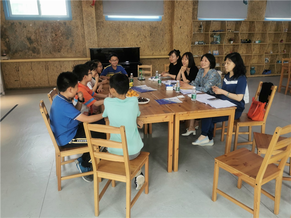 课题组成员和专家们围绕STEAM教育展开了一系列沟通和交流。专家与学校随机抽取的学生代表就学生在STEAM课程中收获的成果和成长感受进行了一番分享和交谈。
