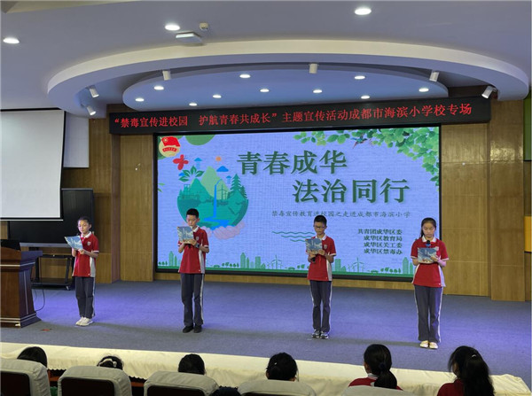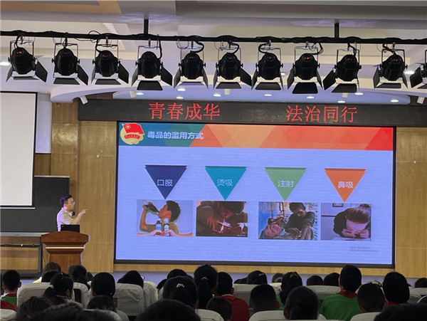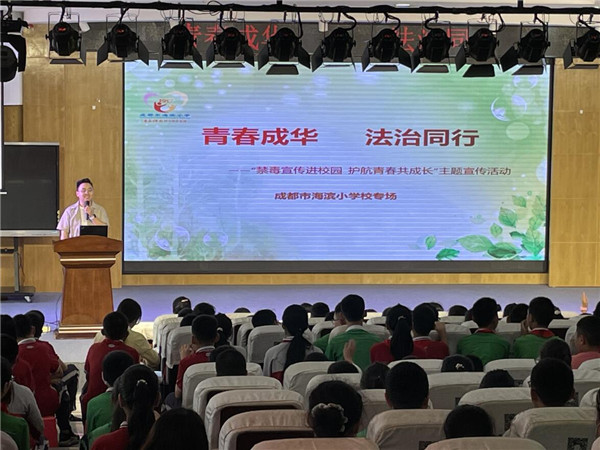 在第34个国际禁毒日到来之际,为大力普及毒品预防知识,切实增强在校学生抵御和防范毒品的能力与意识,积极推进禁毒宣传教育“进校园”工作。5月14日下午,成都市海滨小学六年级在四楼会议室开展了一次以“禁毒宣传进校园 护航青春共成长”为主题的校园禁毒宣传教育活动。旨在提高六年级师生识毒拒毒防毒的意识和能力,还花季少年们一片成长净土,让每朵青春花蕾在阳光下恣意绽放。