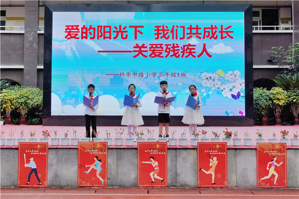 近日,成都市科华中路小学开展了“爱的阳光下 我们共成长——关爱残疾人”主题教育活动。此次活动由三年级一班承办。