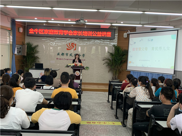 2021年5月20日,成都市凤凰小学开展了一场家长培训公益讲座,该校三年级全体家长参加此次活动。本次活动特邀金牛区家庭教育学会讲师余静老师为家长分享《做智慧父母 育优秀儿女》。