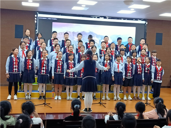 5年级的同学们热情饱满,纵情歌唱,气势磅礴,激情飞扬。