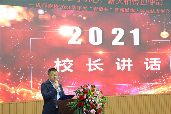 青年教师的成长离不开自我学习,离不开领导的指导,更离不开学校为大家搭建的舞台。车平校长为本次大赛做总结性讲话。车校长肯定了“青蓝杯”赛课、新媒体大赛中辛勤付出的每一位参赛老师和评委。鼓励老师要追求一种价值;坚持两个根本——一坚持完成好教学任务,坚持以学生为根本;做好教学基本功。利用多种智慧教学手段辅助教学,会用而不滥用,从而形成一套符合世道要求的教学思想和观念。