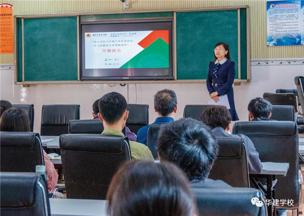 黄杰校助向半扇门学校介绍了华建学校13年来课题研究的历程,介绍了2个成都市规划课题,3个成华区规划课题的研究情况。接着以学校在研的成都市教育科研一般课题《混合式学习环境下学生差异化学习的教师支持策略研究》为载体,从问题的提出,已有研究述评,研究价值,关键词界定,研究目标及内容,研究思路、方法及创新点,研究步骤及措施,预期研究成果,研究保障九个部分,为半扇门中学的老师们作了一场如何撰写课题开题报告的培训。培训内容详实、专业性强,为半扇门中学老师们做课题研究提供了可学习、可借鉴的优秀案例。