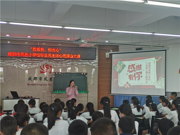 为帮助孩子们更加从容地面对小升初毕业考试,培养学生良好的心理素质和昂扬向上的心理品质。5月24日下午,成都市凤凰小学校开展了“我爱我,和悦心”毕业班主题心理班会课活动。