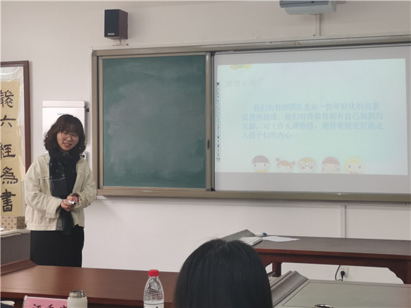 在突发事件答辩中,江老师沉着应对,联系自己的带班经验,对情景中的事件进行剖析、归因,充分体现出处理班级问题的教育智慧。在带班策略环节,江老师以爱心为向导,为大家展示她在带班工作中的育人理念、感人故事,显示了和同学间真挚的师生情谊,展现了在教育道路上获得的职业幸福感。