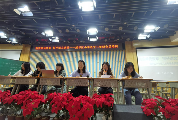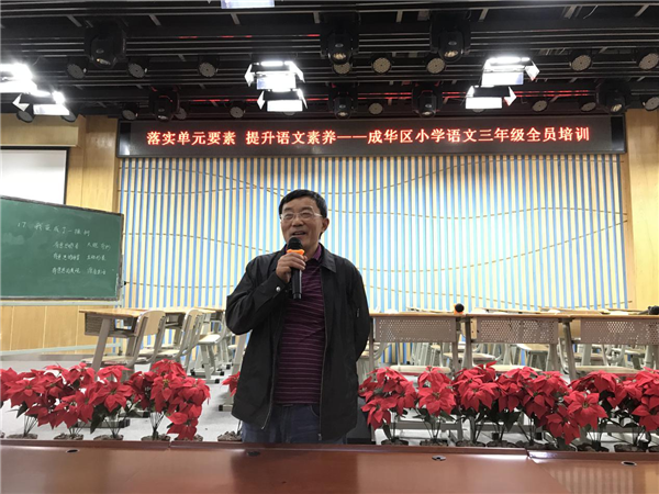 培训最后,成华区教育科学研究院教师发展所所长、小学语文教研员余致俊老师高度评价了此次活动。他肯定了年轻老师热爱学习不断成长的“锐意进取”,也对所有语文教师提出殷切的希望,希望老师们在教学中关注学生学习经历,注重落实单元要素,从而切实提升学生的语文素养。