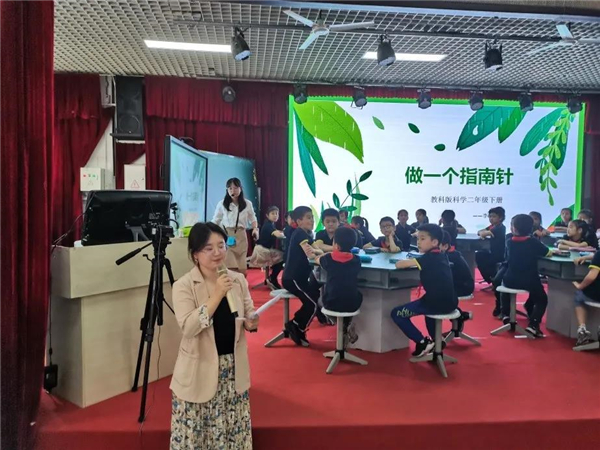 李悦老师授课的内容是二年级下册《做一个指南针》。李老师采用聚焦辨别方向问题引入课例,让学生了解指南针的发展和用途,通过认识古代水浮式指南针结构聚焦本课做一个水浮式指南针的任务,通过学生体验包括设计、实施、改进在内的简单技术与工程实践过程,最后拓展活动了解现代卫星导航技术辨别方向,鼓励学生追求卓越、敢于创新的科学精神。