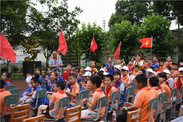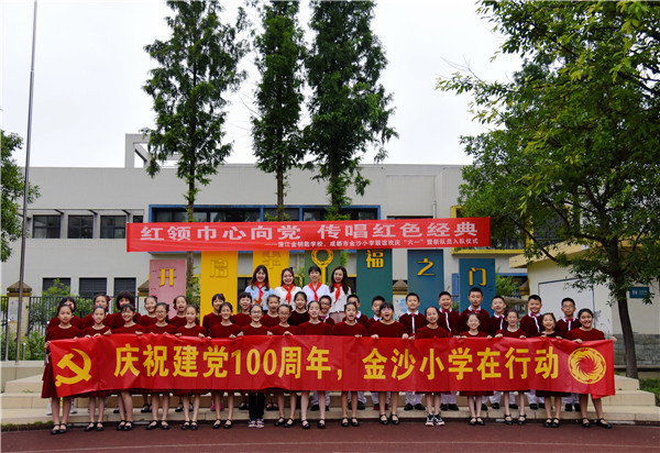 在“红领巾心向党,传唱红色经典”环节中,金沙小学五年级合唱团饱含激情演唱了歌曲《强国一代有我在》和《红红的太阳》。教师代表张池老师和龙洁滢老师演唱了歌曲《不忘初心》。传唱活动精彩连连,老师和队员们都用激昂的歌声对祖国和党表达最真挚的爱。