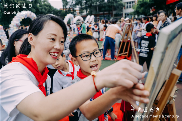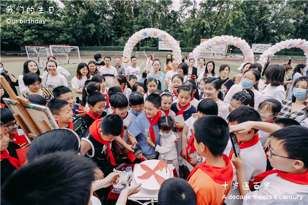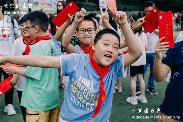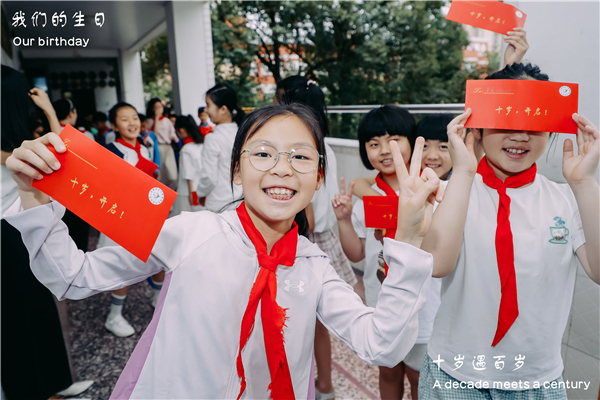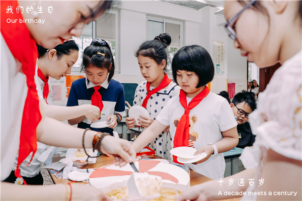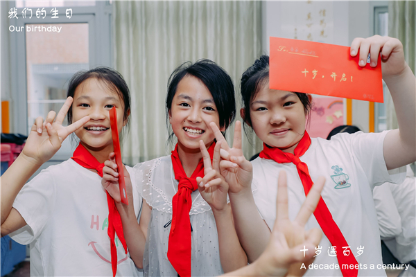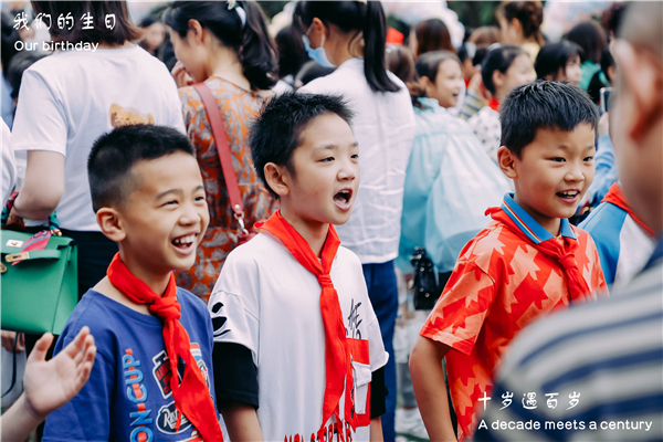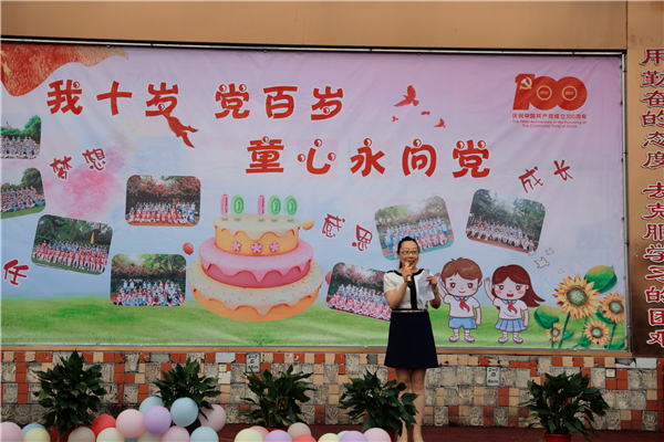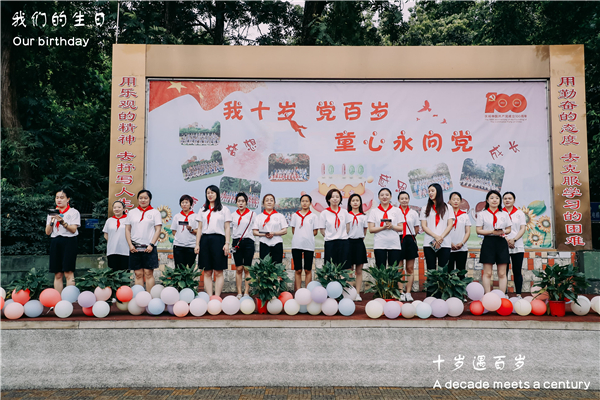 因为今天,正值10岁的他们,幸运地与党的百岁相遇。因为今天,学校为他们办了一场盛大的party。家长和老师一起,与同学们一起唱响红歌,感恩党和祖国。