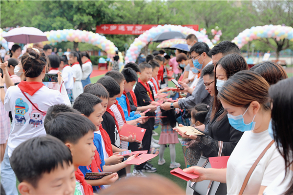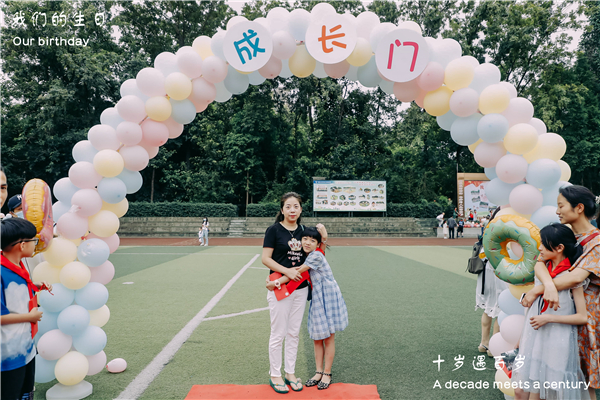 同唱红歌,交换书信,用手印画出爱心树。家长们带着孩子跨过十岁成长之门,合影留念,意味着孩子们将从童年走向少年,走向一个不一样的人生阶段。