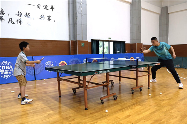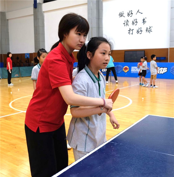 练习中,教练员交流到,玉林附小虽然场地比较紧张,但是学生的兴趣很浓厚,课间随处可见“乒乓打擂”;一年级的玉娃娃打起球来也是有模有样,颇有架势。