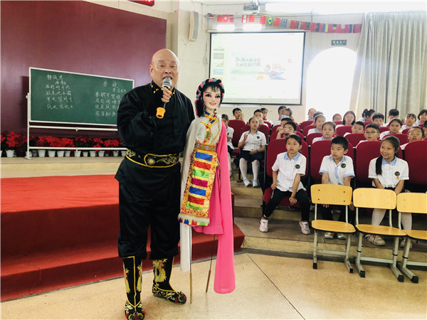 表演结束后,罗老师开始细致的给孩子们讲木偶戏的来源、历史、表演原理,孩子们听得津津有味。随后,罗老师还现场邀请孩子们上台尝试操作木偶,几个幸运的孩子得到了这个机会,和木偶进行了亲密接触。