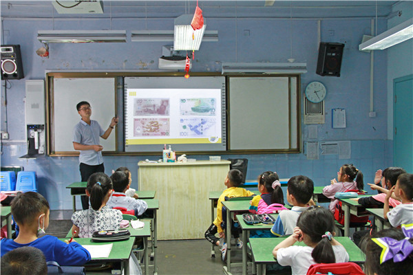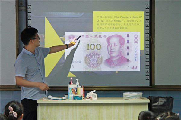 接下来,蒋爸爸向同学们清楚地讲解到生活中碰到假币的问题,为同学们科普了如何辨别假币,碰到假币该如何处理等问题,同时教导同学们要爱护人民币,正确保存和使用人民币,让同学们在学习辨别的同时有一个正确的价值观和方向,让“钱”为爱服务。