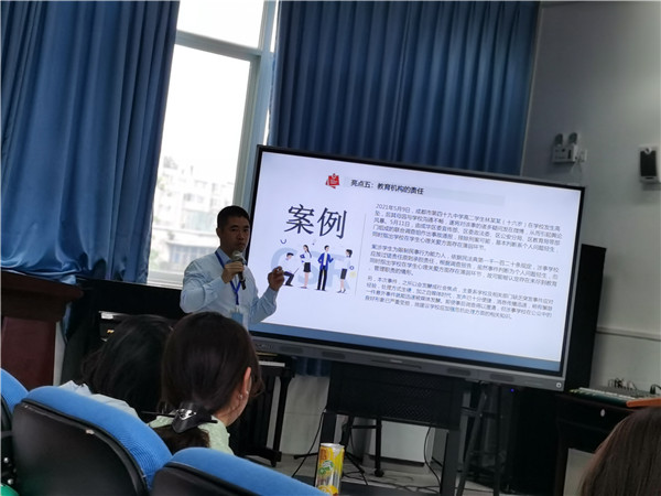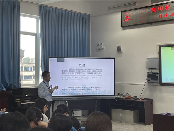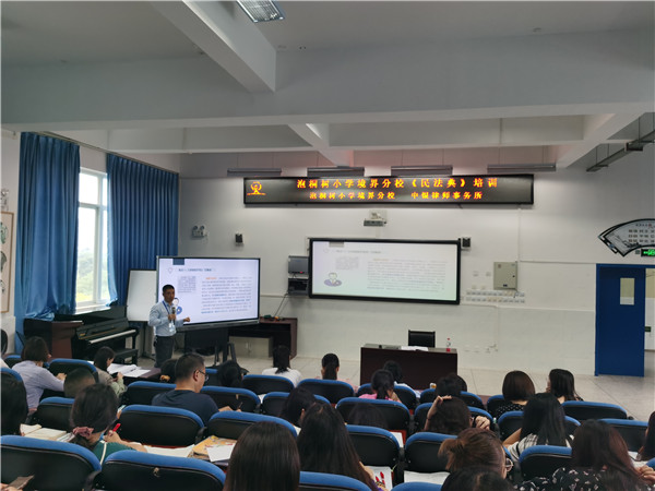 2021年6月7日,成都市泡桐树小学境界分校邀请学校法律顾问、中银律师事务所陈华朝律师为全校教师带来了一场《民法典》宣讲活动。